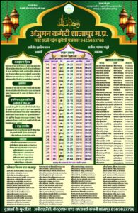 काज़ी जनाब एहसान उल्ला साहब ने समाजजनों को सम्बोधित करते हुए कहा कि अंजुमन कमेटी ने स्थानीय समय के मुताबिक़ उलेमाओं से तस्दीक़ की हुई जंत्री का प्रकाशन किया है। जिसे सभी मस्जिदों के साथ सार्वजनिक स्थानों पर लगाया जाए। सोशल मीडिया का उपयोग भी जंत्री पहुंचाने के लिए किया जाना चाहिये। अंजुमन कमेटी द्वारा जंत्री जारी किये जाने से समाज में कोई कन्फ्यूजन नही होगा। उन्होंने कहा कि रमज़ान की इबादत, शांति और सद्भावना का पैग़ाम देती है। रमजान सिर्फ़ रोज़ा रखने का महीना नहीं, बल्कि तक़वा, सब्र, रहमदिली और गुनाहों से तौबा का महीना है। समाज में शांति-सद्भाव बनाए रखने की ज़िम्मेदारी हर एक व्यक्ति की है। सभी मिलकर रमज़ान के भलाई के पैग़ाम को आत्मसात करें।
