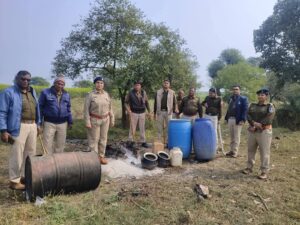 8300 किलो ग्राम लाहन मौके पर नष्ट एवं लगभग 16 लीटर हाथ भट्टी मदिरा जब्त