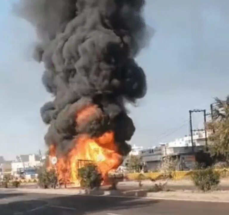 इंदौर नेशनल हाईवे 52 पर दो ट्रकों में लगी आग
