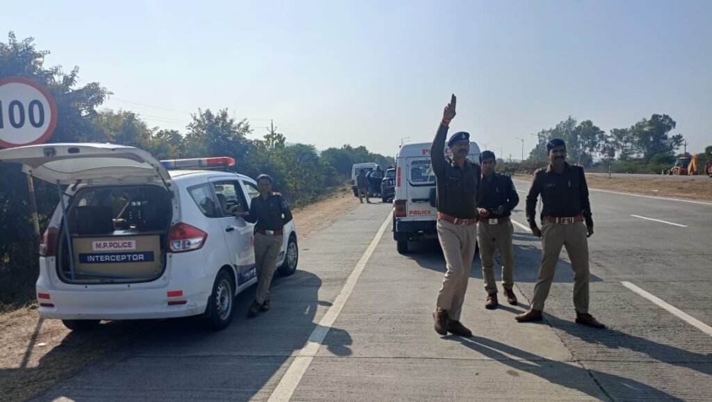 शाजापुर। नेशनल हाईवे पर शाजापुर यातायात थाना और लालघाटी थाना पुलिस ने संयुक्त रूप से कार्यवाही करते हुए तेज रफ्तार वाहन चालकों को सबक सिखाया और इंटरसेप्टर वाहन से तेज रफ्तार वाहनों की गति के खिलाफ चालानी कार्रवाई की गई यातायात थाना प्रभारी सौरभ शुक्ला ने बताया कि सड़क हादसों पर नियंत्रण के लिए लगातार यातायात नियमों के उल्लंघन पर कार्यवाही की जा रही है इसी के तहत राष्ट्रीय राजमार्ग क्रमांक 52 पर यातायात और लाल घाटी थाना पुलिस द्वारा तेज रफ्तार वाहनों पर कार्यवाही की गई है यह कार्रवाई निरंतर जारी रहेगी
