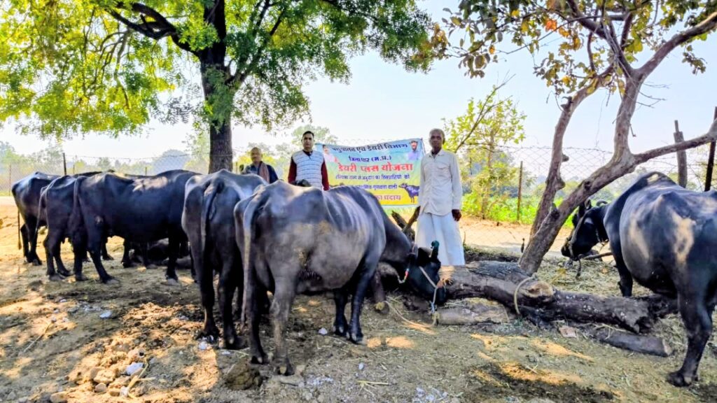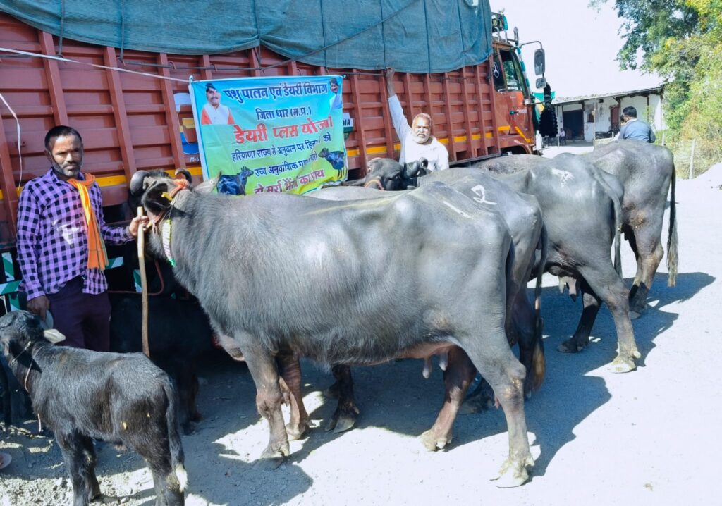 धार—- प्रदेश के किसानों की आय पशुपालन के माध्यम से बढ़ाने एवं दुग्ध उत्पादन को दोगुना करने के उद्देश्य से मध्यप्रदेश शासन के पशुपालन एवं डेयरी विभाग द्वारा संचालित डेयरी प्लस योजना के अंतर्गत जिले में मुर्रा नस्ल की भैंसों का वितरण किया गया।