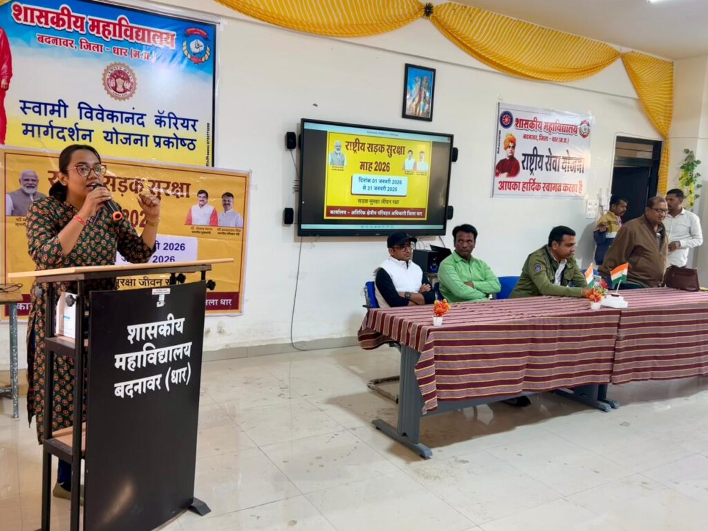 कलेक्टर श्री प्रियंक मिश्रा के निर्देशानुसार एवं श्री हृदेश यादव, क्षेत्रीय परिवहन अधिकारी (आरटीओ) धार के नेतृत्व में राष्ट्रीय सड़क सुरक्षा माह 2026 (01 जनवरी से 31 जनवरी 2026) के अंतर्गत शासकीय महाविद्यालय बदनावर, जिला धार में लर्नर्स लाइसेंस शिविर का आयोजन किया गया।